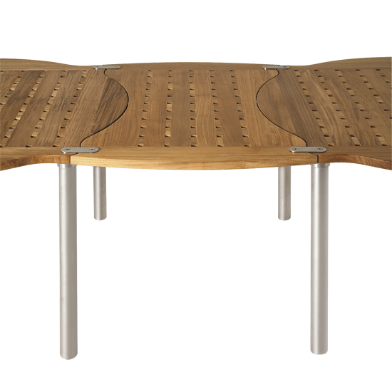 The Matchmaker, handcrafted of premium teak, effortlessly joins our Fifty-Five tables to accommodate groups of varying sizes, adding a generous 19.5 inches in length. (Requires minimum of two tables.)